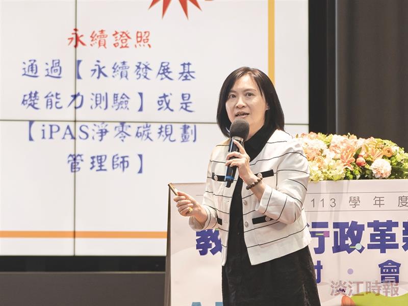 教學策略應該注重計劃和執行,在檢查和反饋上可以投入更多,透過PDCA的全品管精神,不僅要檢視學生的反饋,更要追蹤成效,確保目標達成。今天的會議讓我們對未來充滿信心,不僅在AI和永續發展上走在前端,也在全球趨勢中保持同步。淡江需不斷優化,期望能持續帶領臺灣在重要議題上更具前瞻性。再次感謝大家的參與,祝淡江大學能在永續發展的路上向前邁進。