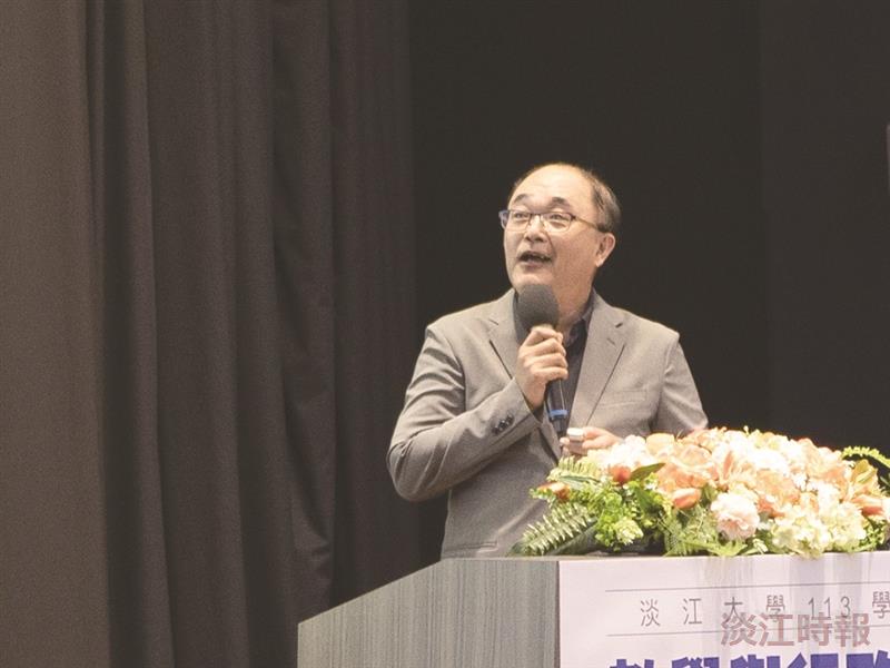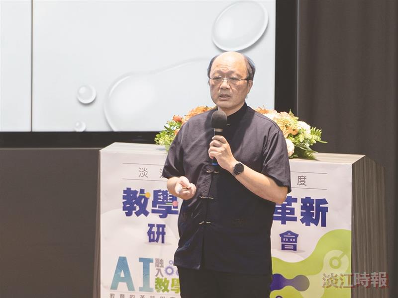 教務長蔡宗儒以2022年ChatGPT橫空出世為世界帶來許多改變開場,接著分析學校課程融入AI的現況,最後以「AI倫理」作結。