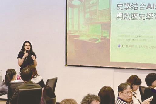 分組報告第二場歷史系教授,註課中心主任林嘉琪進行教學革新典範分享。(攝影/李而義)