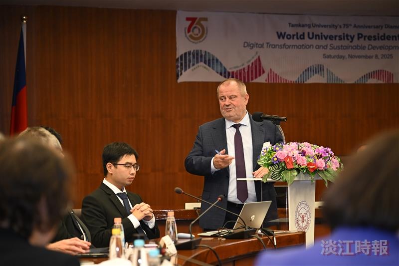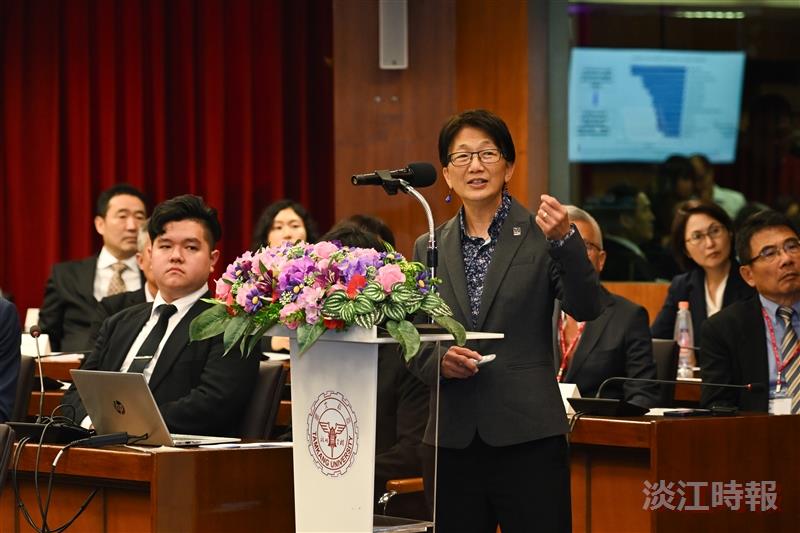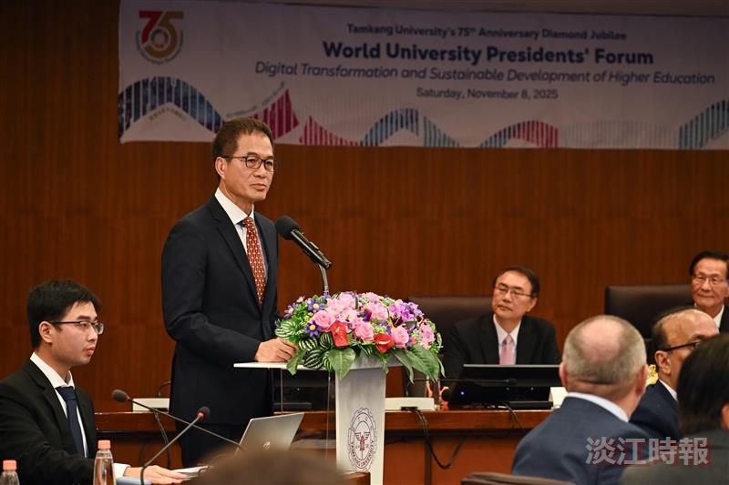 「在快速變動的世界中,高等教育不僅要因應變化,更需領導未來。」許輝煌以自身在數位策略與學術治理的專長,說明淡江大學以「AI + SDGs = ∞」與「ESG + AI = ∞」作為核心願景,透過 AI 與永續發展的結合重塑課程、教學與大學治理,使學生具備跨域能力、批判思維與全球視野,在數位與永續並行的時代中茁壯成長。
